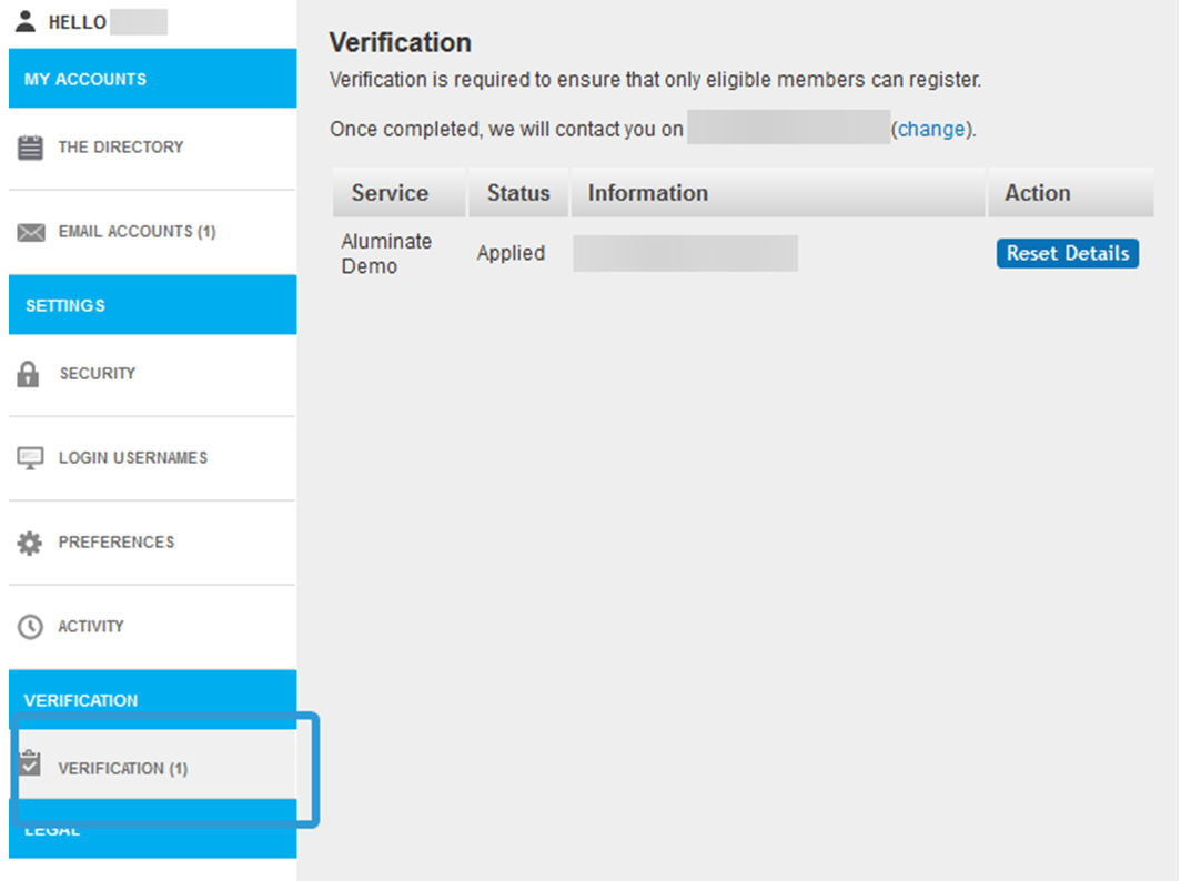 If you wish, you can log in to your account to check on the status of your application. Once you have logged in, go to the My Account dashboard and click on Verification in the bottom left: